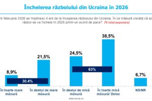 Doar 3 din 10 români cred că războiul din Ucraina se va încheia în 2026 printr-un acord de pace, conform sondajului „4 ani de război în Ucraina. Impactul profund asupra opiniei publice din România” realizat de INSCOP Research pentru New Strategy Center. În plus, aproape o treime dintre respondenți sunt […]