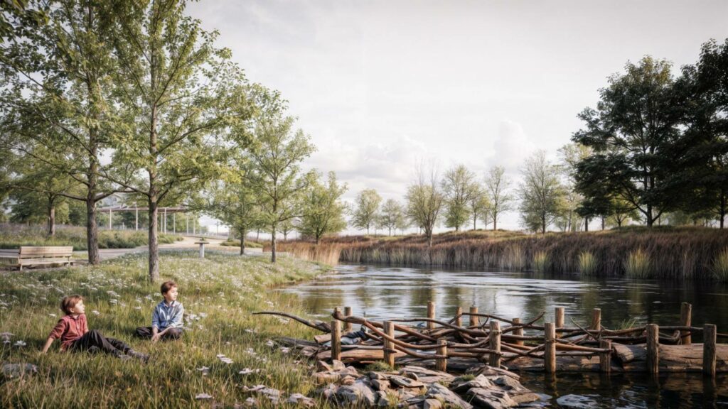 Parcul va avea spații de joacă și trasee pentru plimbare sau alergare. În zona lui de nord se va construi un lac, care va funcționa ca bazin de retenție pentru apele pluviale, preluând surplusul de apă din valea cartierului Micești-Orizont, surplus care va fi direcționat și spre zona umedă a parcului, sprijinind astfel biodiversitatea locală.