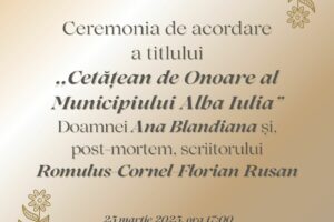 Ana Blandiana și Romulus-Cornel-Florian Rusan vor fi Cetățeni de Onoare ai municipiului Alba Iulia
