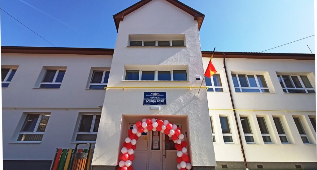 185 de preșcolari din Alba Iulia se joacă și învață, de astăzi, într-o grădiniță modernizată și reabilitată energetic – Grădinița cu program prelungit „Scufița Roșie”, grație finanțării nerambursabile obținute prin Planul Național de Redresare și Reziliență.