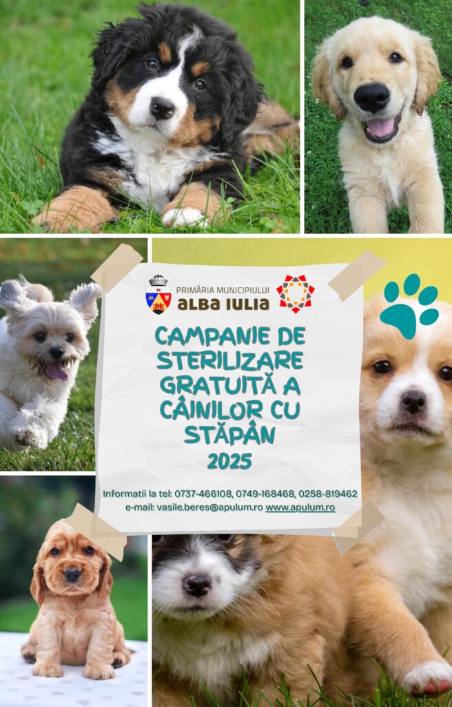 Primăria municipiului Alba Iulia derulează, pe parcursul acestui an, cea de-a VI-a ediție a Campaniei de sterilizare gratuită a câinilor cu stăpân, acțiune care se va încheia la data de 31 decembrie 2025.
