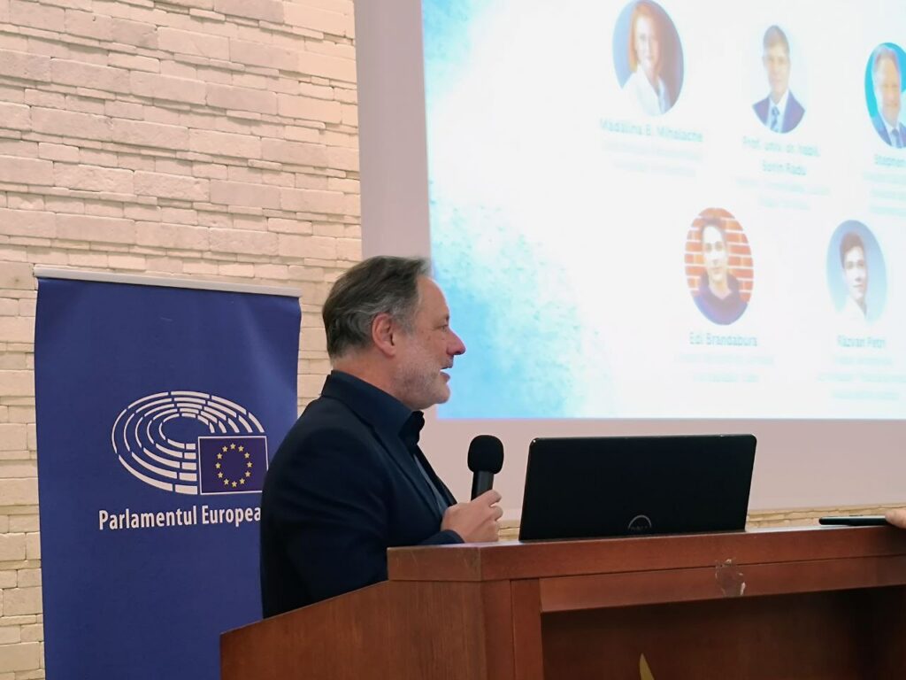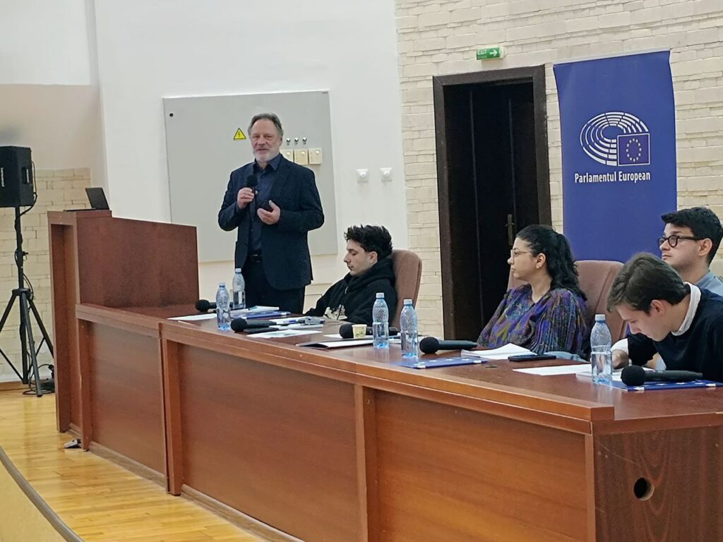 Stephen Clark, directorul Birourilor de Legătură ale Parlamentului European în UE s-a aflat joi la Sibiu, unde a participat la o dezbatere-dialog cu studenți ai Universității „Lucian Blaga” din Sibiu despre cum putem crea punți între generații pentru a crește rezistența în fața dezinformării și a încuraja angajamentul civic.