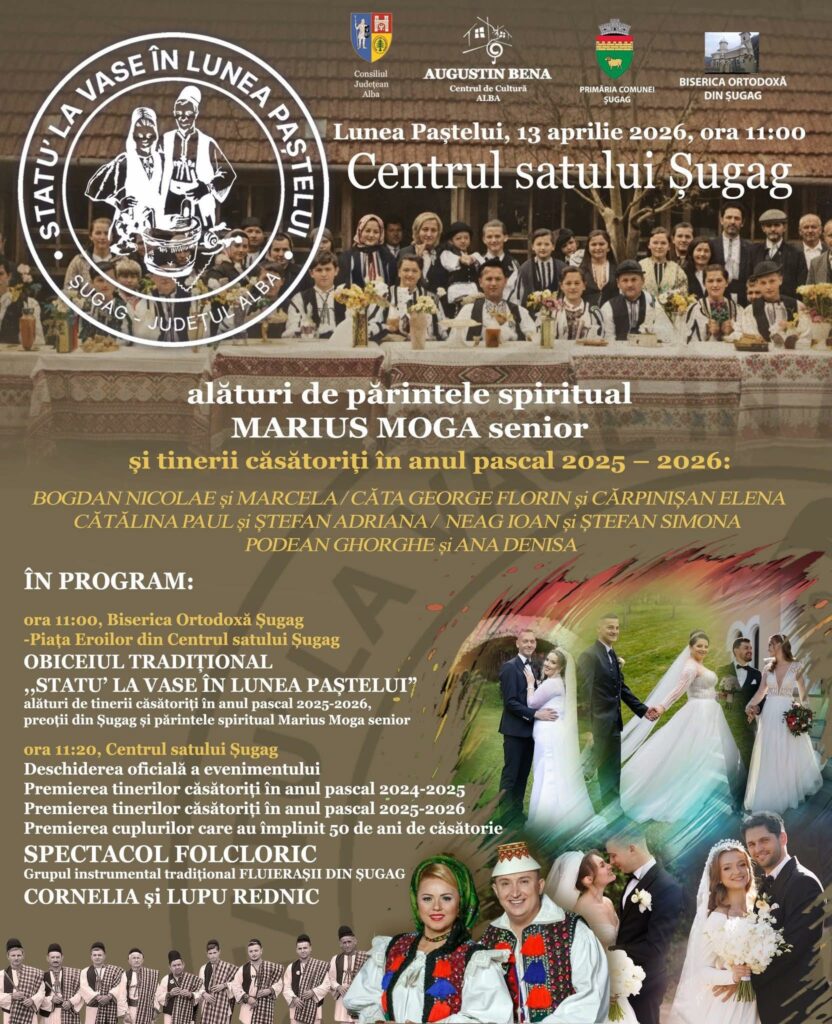 Comunitatea din Șugag se pregătește să celebreze unul dintre cele mai autentice obiceiuri locale, „Statu’ la vase”, un eveniment organizat în Lunea Paștelui care pune în lumină valorile familiei, credinței și continuității tradițiilor românești.