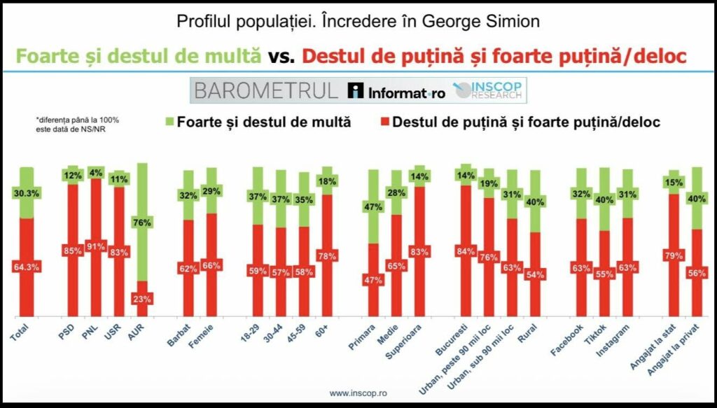 Poate cel mai bine se vede inadecvarea alianței PSD – AUR din structura electorală a celor care au și NU au încredere în liderul PSD, Sorin Grindeanu, respectiv au și NU au încredere în liderul AUR George Simion. Doar 4% dintre votanții AUR au încredere în Grindeanu. Și doar 12% dintre votanții PSD au încredere în Simion. Restul e cancan…”