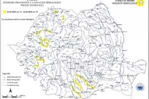 Institutul Național de Hidrologie și Gospodărire a Apelor (INHGA) a emis, luni, o atenționare Cod galben de inundații, ca urmare a precipitațiilor prognozate, a cedării apei din stratul de zăpadă și a propagării, valabilă până marți, la ora 16:00, pe râuri din 15 județe. Astfel, în intervalul luni, ora 12:00 […]