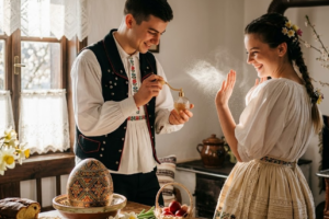 Dacă prima zi de Paște este dedicată liniștii și familiei, cea de-a doua zi scoate întreaga comunitate la drum. În Transilvania, Lunea Paștelui este ziua „Stropitului” sau a „Udatului”, un obicei spectaculos care transformă satele și orașele într-un spațiu al bucuriei și al pelerinajului tinerilor. De sute de ani, bărbații […]